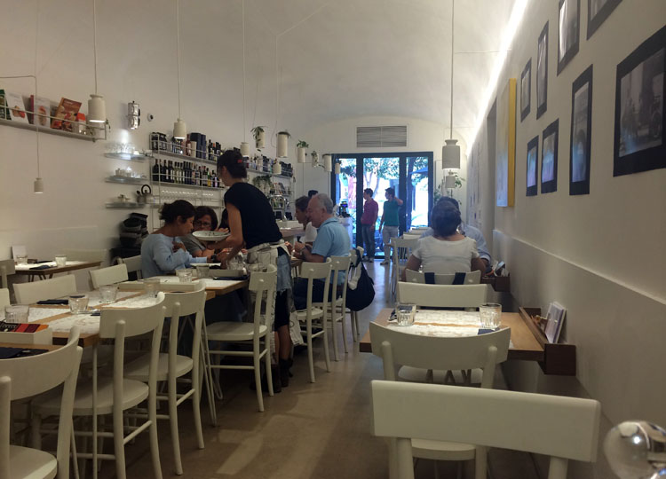 A chance discovery of a smart, stylish and very welcoming cafe just two minutes from the National Archaeological Museum, on Via S Maria di Constantinopoli. Has a clever system of selling by weight – you take a plate and pile with extremely delicious salads, and/or hot dishes. Everything is priced the same and they weigh your plate. Good wines by the glass – both local and more well known (Montepulciano and Tuscany) plus some local craft beers. Chilled, filtered water supplied in a variety of glass decanters. Great interior design – check out the loos. Inside or outside seating. Opened in October 2013, based on a Brazilian concept, they have another branch in the business district of Naples. For an Italian review and more images, click here.