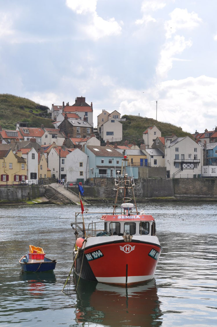 The sound of gulls screeching overhead as they dive across the boats and the lobster pots, the smell of the sea and the lapping of the water as the tide comes in. Staithes is probably the most atmospheric of the North Yorkshire fishing ports, and the most northerly – the border with Redcar and Cleveland is Roxby Beck that runs down to the sea. Still a mixture of day trippers – children building sand castles on the beach when the tide is out – and locals, it has retained its charm despite the number of holiday lets and is part of the coastal stretch of the North Yorks Moors National Park.