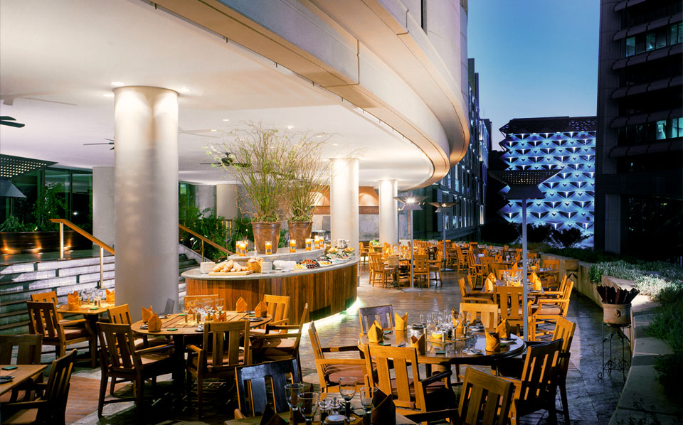 This isn’t somewhere we’re going to rush back to, mostly because we’re not intending to rush back to Saudi Arabia. Nonetheless, it’s an interesting record for the culture more than the food. Il Terrazzo is within the Al Faisaliah Hotel [A Rosewood Hotel] in Riyadh, overlooking a landscaped terrace where the atmosphere is made bearable all the year round by means of mist sprays, which cool and humidify the air. It’s unusual in that the dining isn’t gender separated. Progress in some small form?