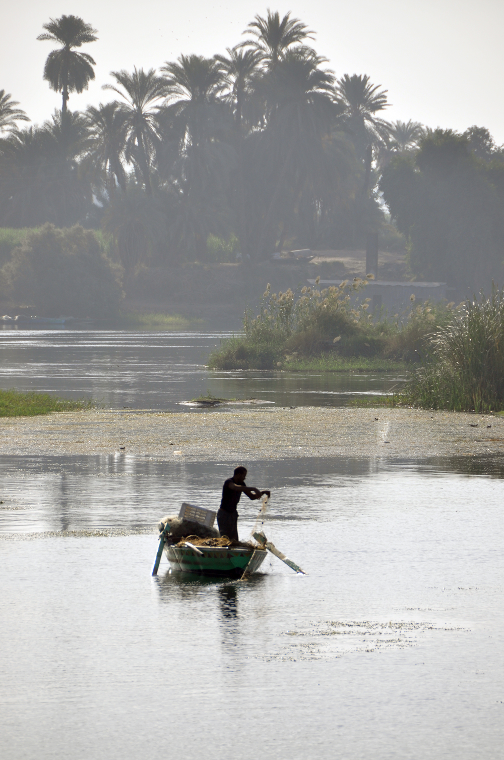 The wildlife is astonishing – we are so silent and have such a shallow draught that under Mamdouh’s skilled captaincy we can nearly touch the bank as we drift along, and we startle herons, egrets, bitterns and the sacred black ibis; beautiful brown cattle graze at the side and tethered buffalo cool off, imitating hippos as they bathe in the water.