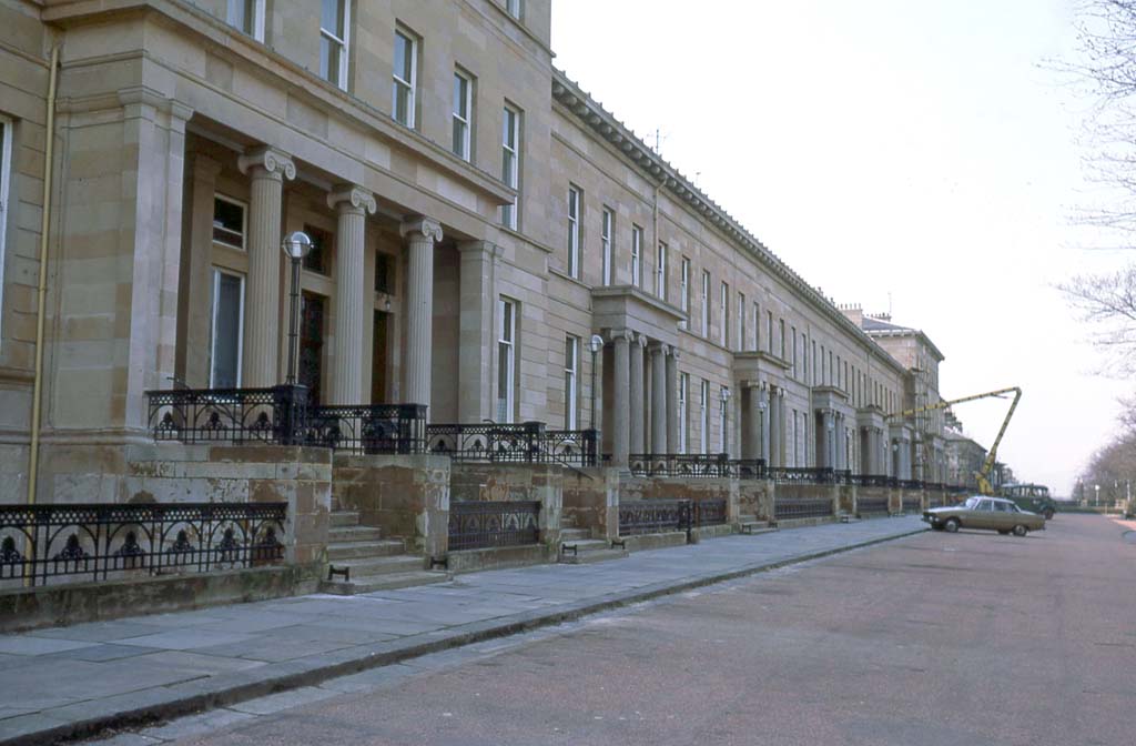 You can walk from One Devonshire either down the Great Western Road, lined with Glasgow’s rich collection of Victorian terraces [Alexander “Greek” Thomson‘s Great Western Terrace], or you can meander through the “West End”, that glorious collection of stone houses that have remained intact through all the changes that the 19th and 20th centuries threw at it. No other industrial city has managed this – Leeds, Manchester, Liverpool have all seen their similar areas lose their gentility and the population decant to more leafy suburbs. Not so Glasgow, the West End is the place to be. Great restaurants. Fabulous terraces such as Park Circus near Kelvingrove Park [you’ll find 15 Glasgow there], or any of the terraces and circuses to the west of Byers Road. Elegant beyond belief.