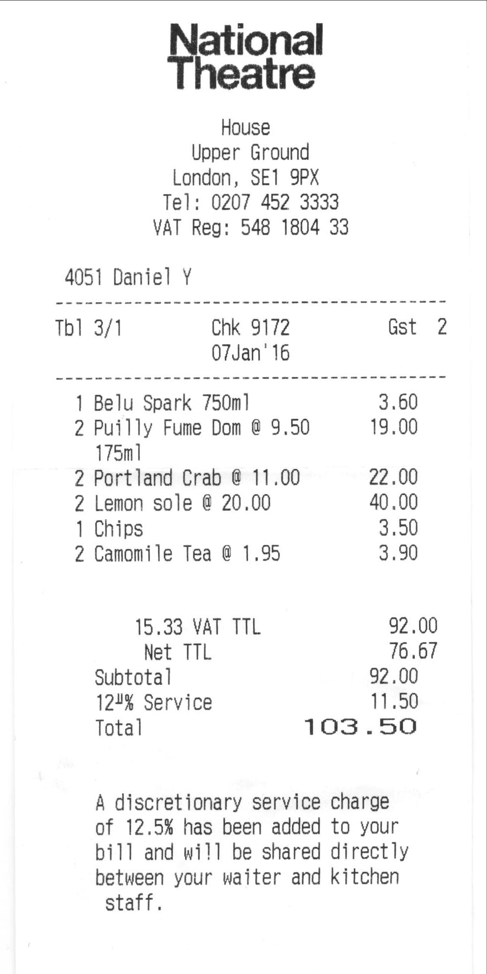 There was some trepidation amongst 50% of the party about the length of Jane Eyre [3 hours 20 minutes] and the risk of falling asleep on the front row of the circle. However, the time raced by, the performance quite electrifying. It originated at the Bristol Old Vic as two plays, delivered on successive nights. At the NT pressure for a slot encouraged the tweaking to a one-night long play and, for our part, it didn’t suffer. There was some talk by the critics about it being turned into a “gallop through Jane’s life” but it conveyed the book quite successfully and enjoyably. Since it started at 7 pm and finished a little late at 10:25 pm, it didn’t seem right to hike over to Soho to eat. Previous visits have seen us at the RSJ but this time we tried the NT’s restaurant “House”. A small group filled a corner of the restaurant where a very rapid and enjoyable two or three course meal sealed the evening. Two excellent crab starters and two deliciously soft, gently fried lemon sole with chips was just what was needed, with a couple of very acceptable glasses of Puilly Fumé. A quick Camomile tea and then the hike back to the hotel – we walked about 15 miles that day.