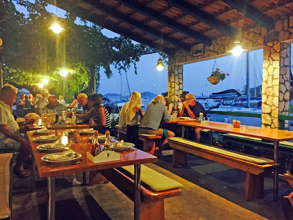 Boats cruising the Dalmatian coast are sometimes provided with a copy of “A Gourmet Cruise: the Adriatic Good Food Pilot”. Now, don’t get your hopes up, it mostly stretches to how soon after the fish has been caught it lands on your plate, or how you can watch the fish being prepared on the restaurant’s jetty. All good stuff, but there’s nothing to threaten the Michelin Guide here yet.