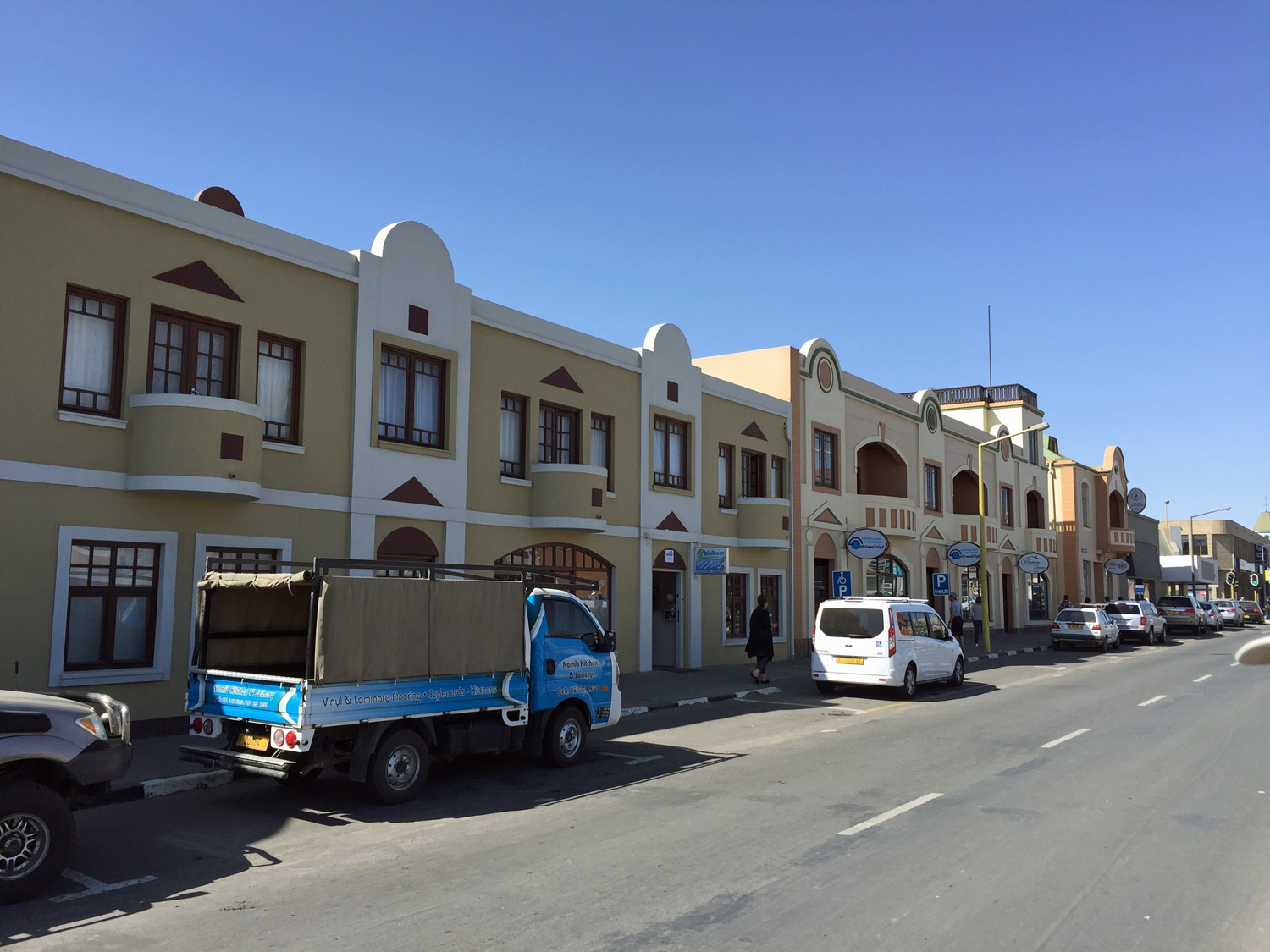 After around 400km (it’s becoming a trait) we reach Swakopmund, a pretty coastal town with much in the way of German architecture and influence, a hang over from its time as a German colony at the end of the 19th century. There’s still a strong fishing tradition here, still a major source of Namibia’s foreign earnings (after diamonds) and so promises good fish to eat. The town has evolved a number of activities to make it more than just a staging post between lodges. We go kayaking to visit the resident seal population. To launch your kayak in the sheltered lagoon, you drive past (1) a thriving salt industry and (2) thousands of flamingoes in the shallow waters. We see jackals – the only ones anywhere that live on a beach – picking up flamingo and seal pups.