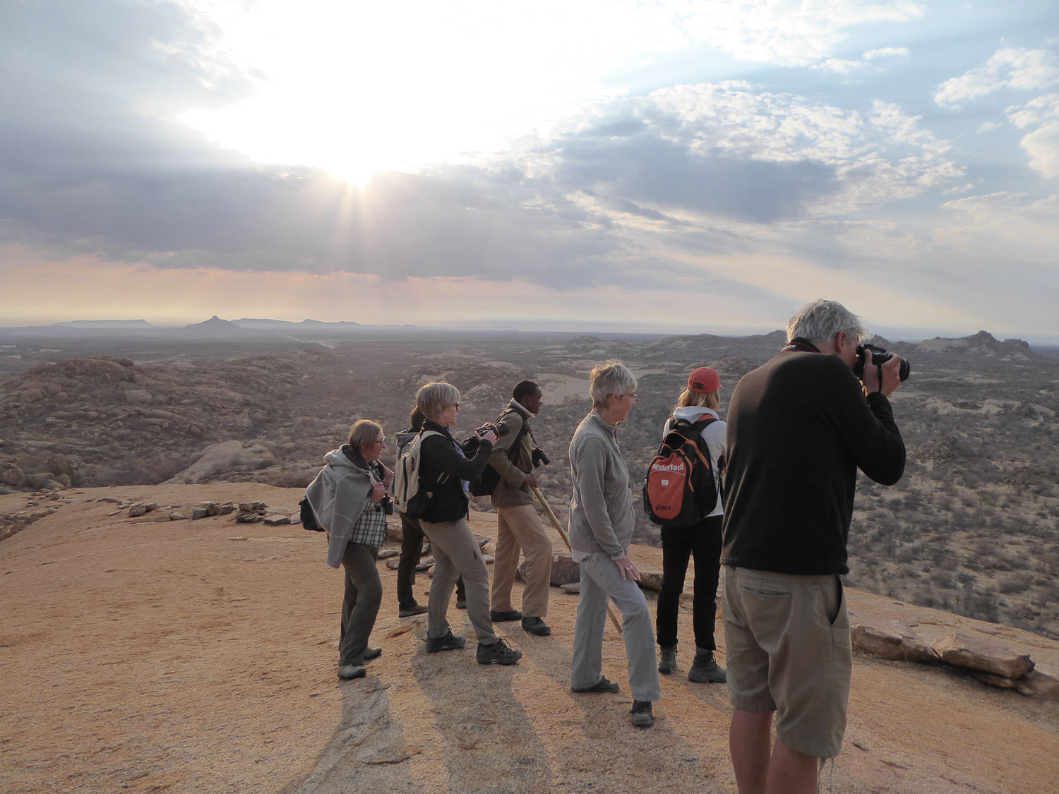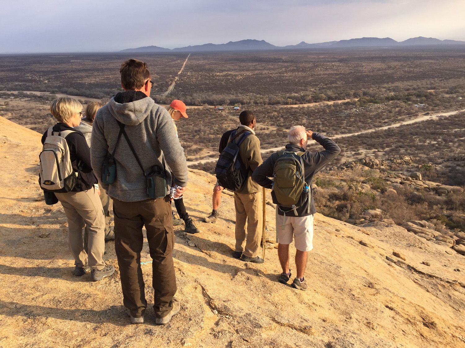 In the morning we walk. Around three hours in the early morning light, whilst the temperature is bearable. We climb right above the camp and are rewarded with a final Namibian view – the plains stretching as far as the eye can see.