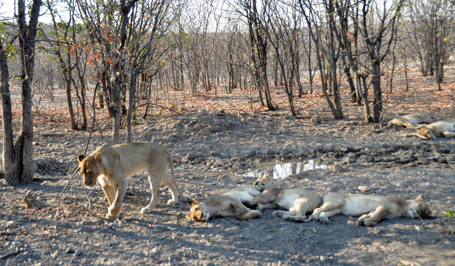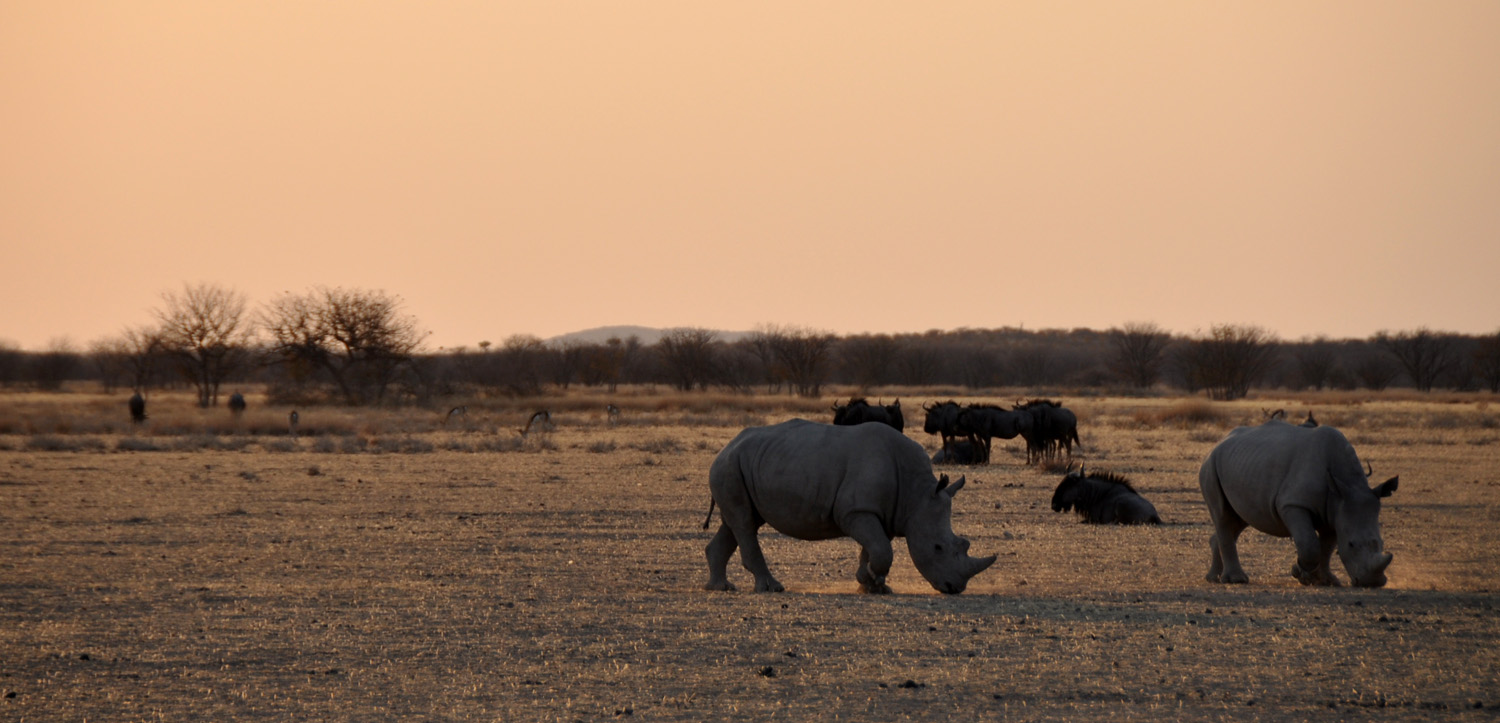We leave the dry, lunar desert conditions and head northwards for some more traditional game viewing. Namibia is a country of huge contrasts and so far we’ve seen some of the very best desert landscapes. We now head for the area around Etosha National Park, still very dry but able to support some varied wildlife. Home to a network of man-made water holes and naturally occurring springs, the southern boundary of the Park is home to enormous numbers of African animals, earning Etosha the reputation as one of the best game reserves in the world. Roughly half the size of Switzerland this is an enormous game park with a huge pan – dried up lake bed – at its heart. The lake finally dried up around 2,500 years ago – a few seconds in geological time – and the Park has established a series of waterholes to help sustain the large and varied game population. Despite all the controls poaching still exists and we meet a group who photographed a rhino with a bullet wound. The story is that poachers must have had help from park rangers in order to succeed and indeed one has recently been caught.
