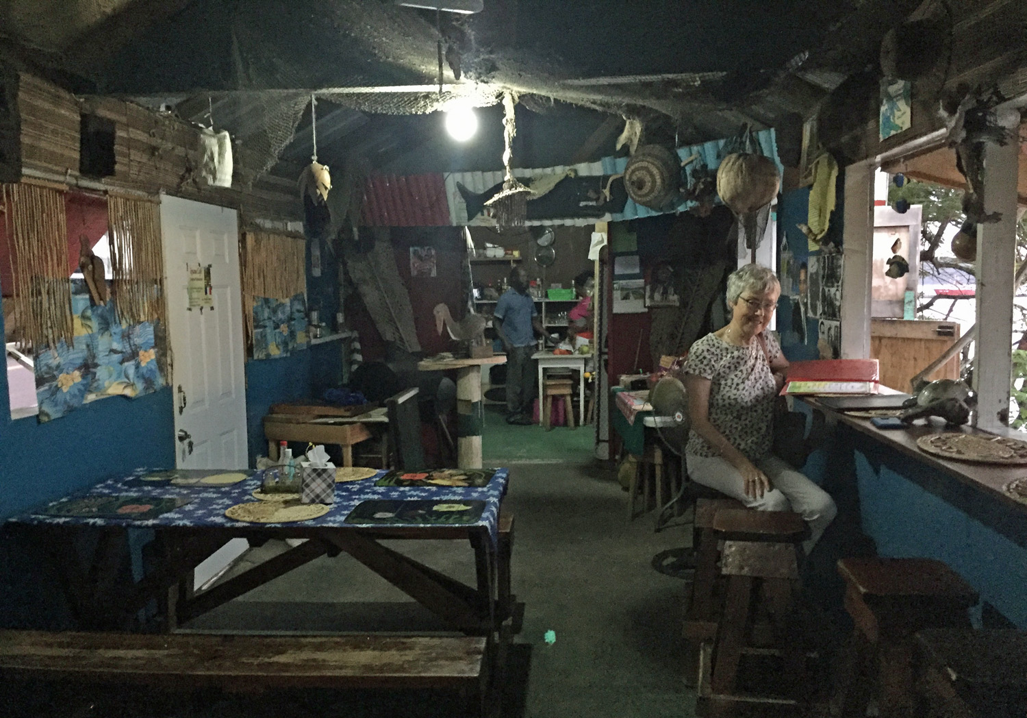 However, before the emergency evacuation we have a little local colour to experience. We head into Portsmouth, on the north west coast just a few minutes from Secret Bay. We could go to The Champs, which promises fine dining but experience suggests that description is a little inappropriate for Caribbean cuisine. Instead, we opt for real local food at Iguana Cafe. We’ve watched an iguana climb a tree right outside our balcony and they’re protected, so we’re not anticipating them being on tonight’s menu. Incidentally a friend bought us a guinea pig cooker a few years ago, on which we cooked steaks, salmon and the like. In South America they cook…guinea pigs.