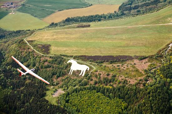 Whilst there visit the North Yorks Moors National Park Visitor Centre and the white horse. The short [1.5 mile] walk to the white horse passes the Yorkshire Gliding Club – always worth a watch.