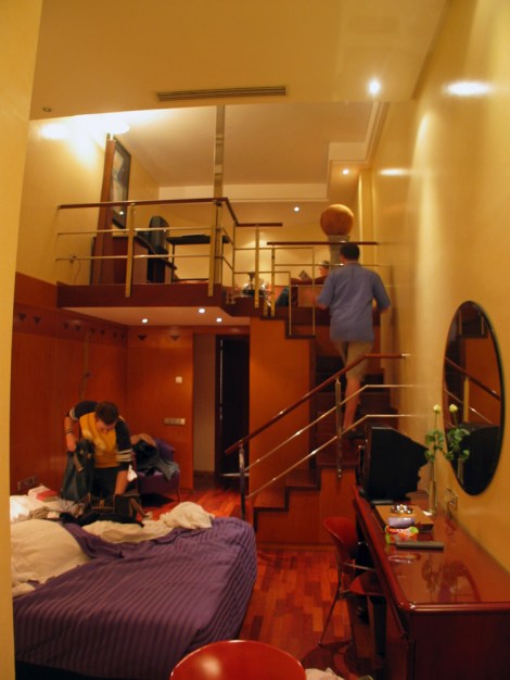 Their room – or apartment – was over two storeys, with two bathrooms, living rooms and a mezzanine seating area. A junior suite duplex, we believe. The staff at the hotel really enjoyed themselves.