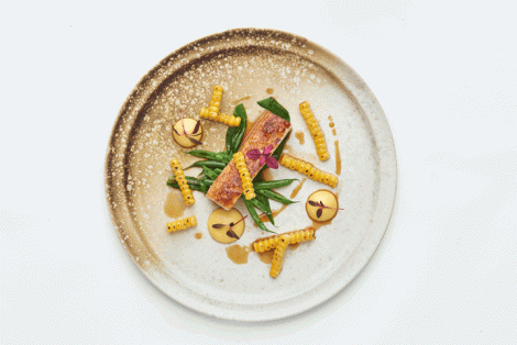 We had the tasting menu, served by a couple of very slender chaps in smart suits – you know the sort – jackets a bit too short and a popular shade of not quite dark blue. Very à la mode. If you imagine the inside of a small building, three-quarters of it was the restaurant for twelve tables [quite small] and the other one-quarter was the kitchen. I’ve seen bigger galleys on a dinghy. And all on display.