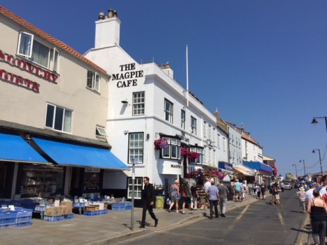 Anyway, we digress. The point was [1] to enjoy a great bracing walk in glorious sunshine and [2] try out the newly reopened Magpie Café in Whitby. Closed since May following two fires, it opened again in late October fully refurbished. Now this café holds special memories for many of us, remembering visits some fifty years ago as a treat in lieu of sandy tomato sandwiches on the beach. The best fish ‘n chips in the world. Great that they tell you all the fish they have available, and even the type/brand/breed of potato used for the chips that day. Jay Rayner’s review in 2009 praised it. AA Gill – famed restaurant critic, author of the great book on The Ivy, and former husband of Amber Rudd [he didn’t get everything right] chose the Magpie as his final meal out before he died.