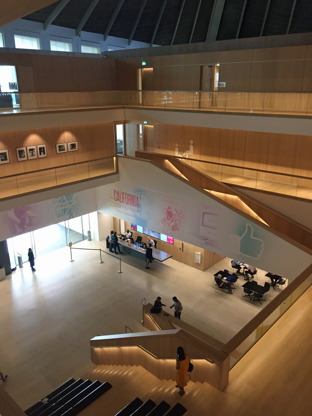 Moved from its crowded home on the South Bank to the former Commonwealth Institute in Kensington, the place really celebrates great design. Converted by John Pawson the sheer elegance and simplicity is a welcome contrast to the shoddy, dark and gloomy extension to Tate Modern. Materials are carefully chosen not only for their appearance but their maintenance and longevity [we know – astonishing for an architect…could be Otto Wagner] and there are as many people taking photographs of the inside of the building as there are of the exhibits. The main retained feature is the swooping hyperbolic paraboloid roof [hence the restaurant’s name] which you can appreciate from the upper gallery. Magnificent.