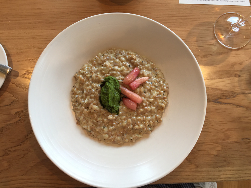 Simple, very tasty Nordic inspired vegetarian 3 course menu (£45 each mind plus drinks, but it did include entry to the exhibition), plus some sourdough starter and little petit four to finish. Very friendly staff – the Italian server disappeared into the kitchen and returned with the recipe for the courgette tart written on the menu. That’s dedication for you.