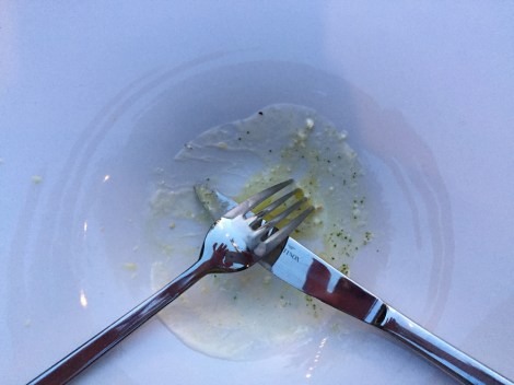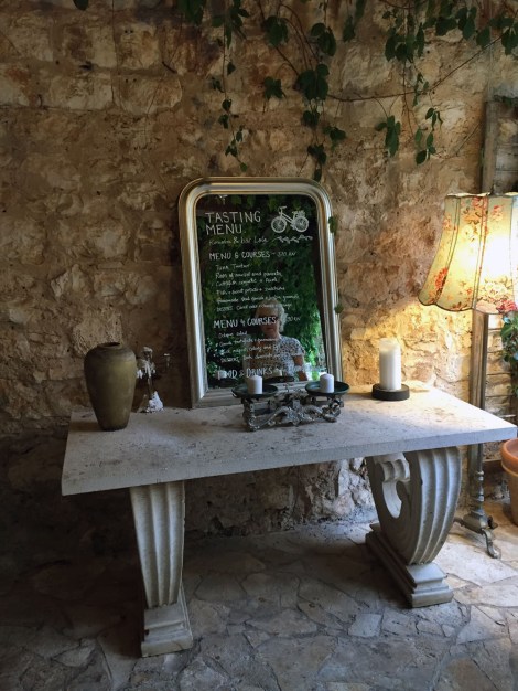 So Lola, not too hard to find in the little narrow streets back from the quay, a delightful garden able to seat maybe 50? Not as discreet as Kaliopa but with two simple prix-fixe menus: 4 courses or 6. We go for the 4 at Kn290 and, with some amuse-bouche (why do the French get to name everything?) and it’s plenty. Great bread cooked like muffins, in muffin cases. A local red helps it all slip down, though at 15.1% you need to be careful. The best course was probably the Gnudi (like Croatian gnocci) – see photo. Around Kn1500 for 4 – or about £190. Not cheap but then Croatia isn’t these days!