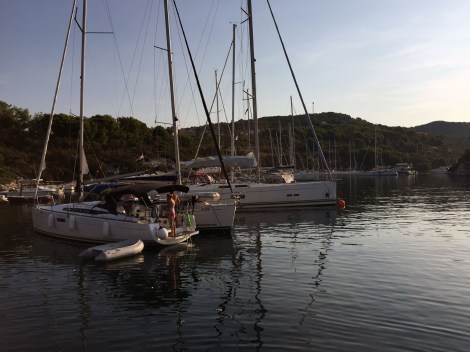 First on the left, as it were, is Konoba Sesula. An informal collection of mooring buoys where, depending on season, you can have a continuous rope (line) starting at the quay and ending with a whacking big lump of concrete on the sea bed. You drag this line on board and hook it on your boat front and rear (fore and aft, apparently). Dead safe. You might have a boat tied on to you (rafted) so it’s quite cosy…or noisy if you’re unlucky. You can – and should – book ahead almost anytime in the season now. MySea is the app to get you booked in.