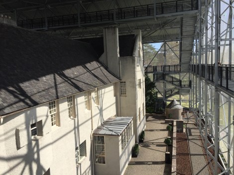 Perhaps his best work is Hill House in Helensburgh – the seaside town itself a repository for many significant pieces of architecture, including by Hugh Baillie-Scott – which was built for Walter Blackie. A sumptuous design, clad in white render, it both evokes the strong Scottish baronial clan defensive castles, whilst pointing optimistically towards a new 20th century architecture – just like his house at 78 Southpark Avenue. Truly the architectural missing link as one century ended and another began. Owned by the National Trust for Scotland it’s recently been completely covered in a chain-mail shed by Carmody Groarke, to allow the optimistically (I.e. poorly) detailed external walls to dry out. There are walkways all around, at high level, so you see where the external render is breaking down [yawn…ed] and enjoys the views out over the town to the Clyde.
