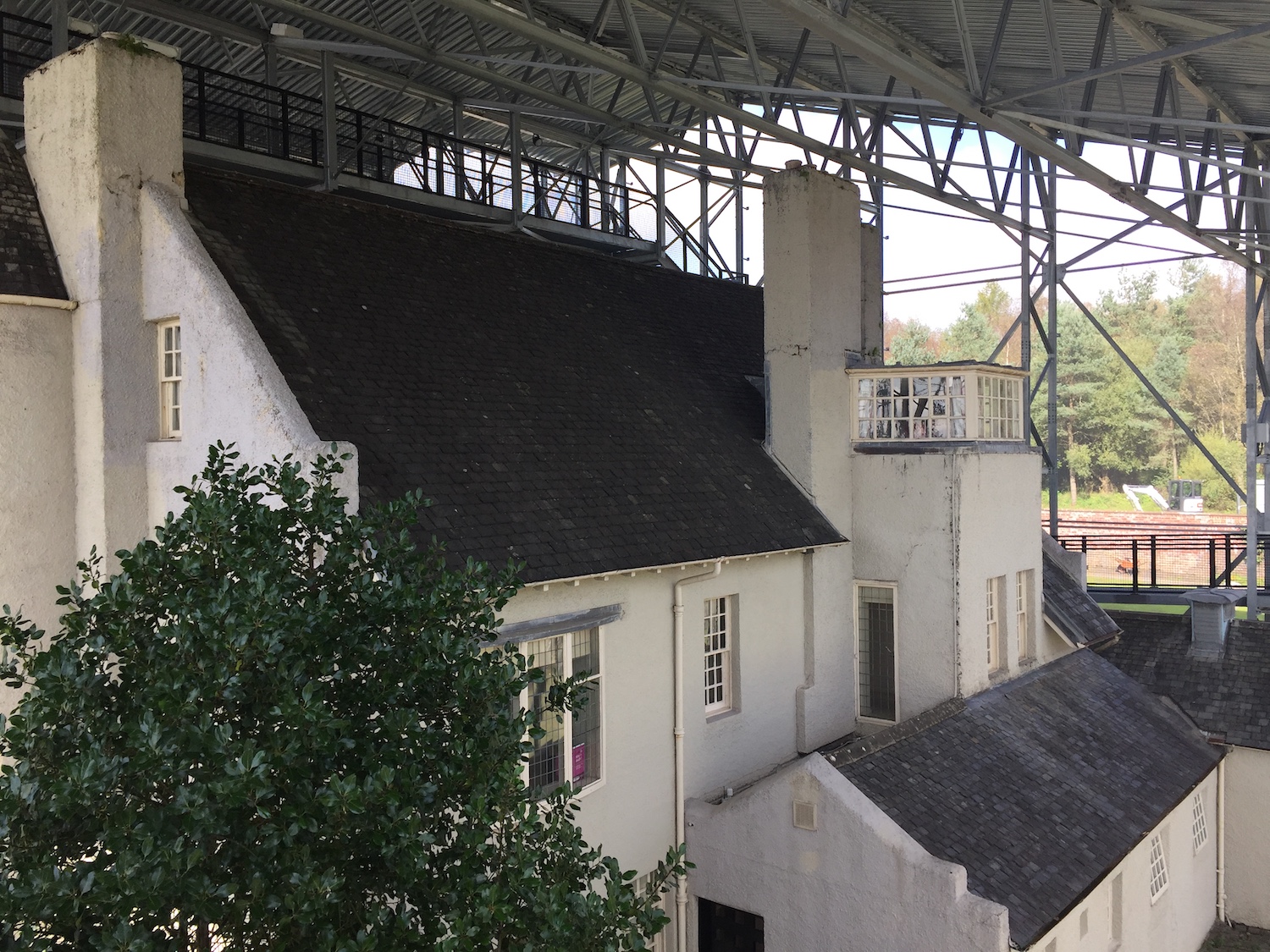 Perhaps his best work is Hill House in Helensburgh – the seaside town itself a repository for many significant pieces of architecture, including by Hugh Baillie-Scott – which was built for Walter Blackie. A sumptuous design, clad in white render, it both evokes the strong Scottish baronial clan defensive castles, whilst pointing optimistically towards a new 20th century architecture – just like his house at 78 Southpark Avenue. Truly the architectural missing link as one century ended and another began. Owned by the National Trust for Scotland it’s recently been completely covered in a chain-mail shed by Carmody Groarke, to allow the optimistically (I.e. poorly) detailed external walls to dry out. There are walkways all around, at high level, so you see where the external render is breaking down [yawn…ed] and enjoys the views out over the town to the Clyde.