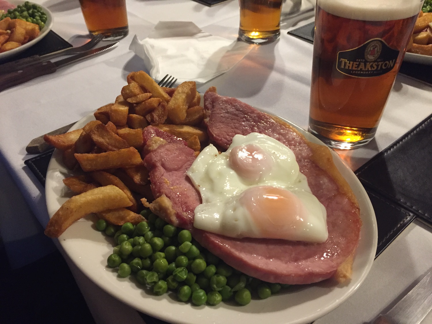 Usually semi-luxurious, this time it was eating at the Coverbridge Inn. They only have a small number of rooms, so a lucky few camped up the road in the The Blue Lion – heaven. We ate at the Coverbridge. Their ‘Ham and Eggs’ saw us replete. No starters offered and only two brave souls have a pudding.