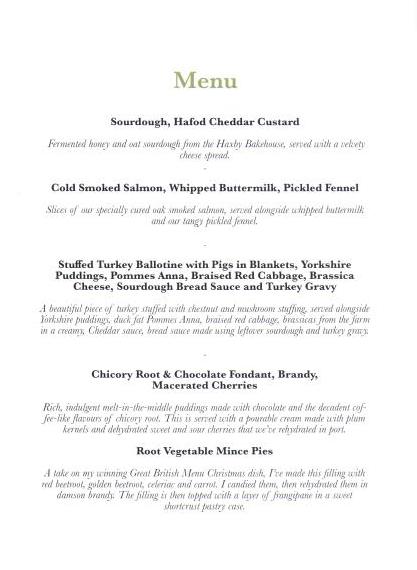 We’ve seen quite reviews now of ‘restaurants at home’. Some, like Northcote for example, might be great but you have to sit by your computer ready to order between 12:00 and 12:01:15 – otherwise they’re all gone. Worse than Glastonbury. We opted for Christmas Dinner by Tommy Banks of the Black Swan at Oldstead, and Roots in York. OK, so not cheap at £120 – and you had to go to York on Christmas Eve to collect [hurrah a day out!].