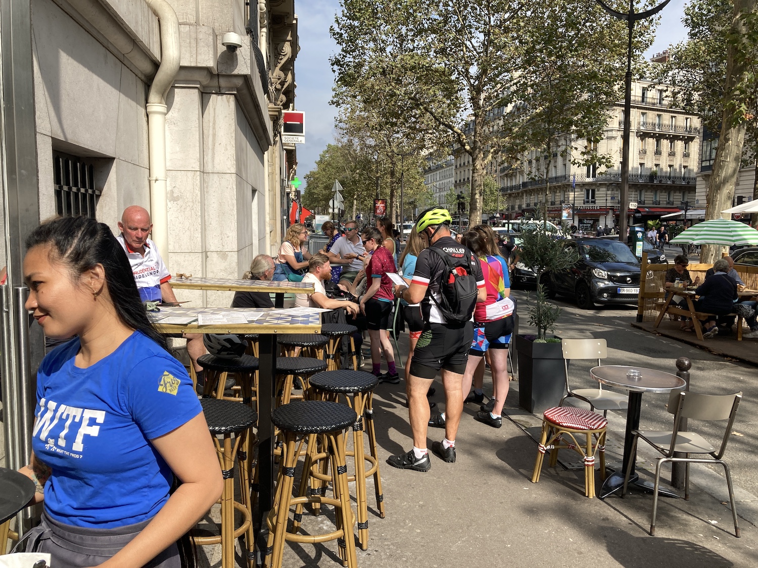 Let’s face it, it was the cheap solution. There are several ‘paid for’ trips and a number of charity events, where you agree to raise a chunk of cash. We did the cheapest ‘paid for’ trip we could find…and it was fine. We didn’t actually camp but we breakfasted at around 5am courtesy of a camping stove in the ferry car park. The Sunday (day 3) was a fast 50 miles to Paris, the last 10 miles slow as we tried to keep together through the busy Sunday traffic. There was clearly ‘something big’ going on, as the roads around the Trockadero were at a standstill and our support van stuck in traffic. Alas, we had to wait in a bar for about 4 hours until the van finally made it and we could say goodbye to our bikes and go exploring Paris.