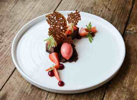 - Chocolate Delice, poached plum, plum sorbet, white chocolate & coffee ganache