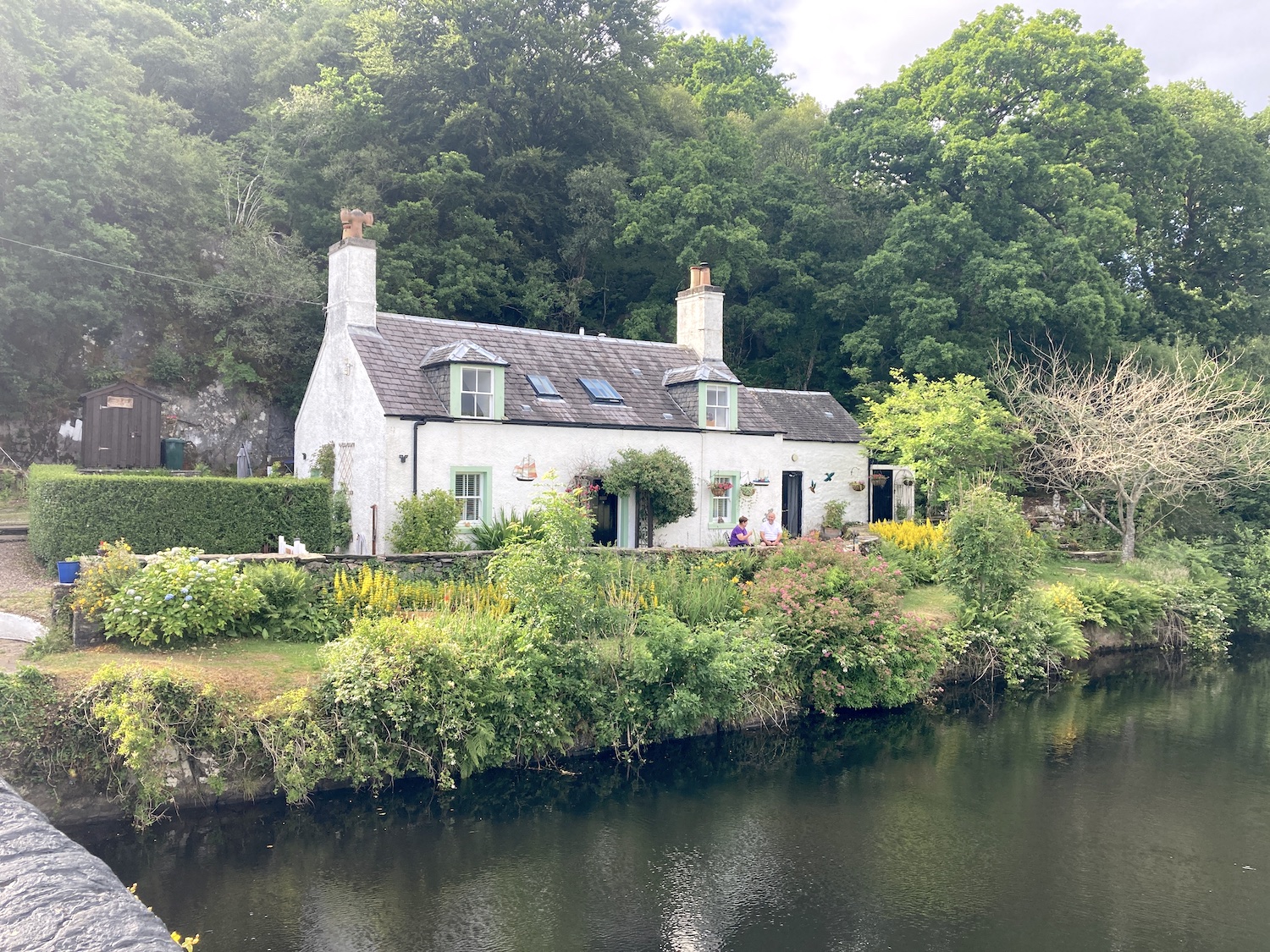 This time we’re using it as a rather comfortable one night stop, en route from Skye to Islay. Who knew it was so far? – it’s all in Scotland after all. We were ‘upgraded’ to a room with a balcony, overlooking the last lock on the Crinan canal, as it whooshes boats out westward to sail around the islands. After mixed weather (it is Scotland…Ed) it is a lovely evening, just like the last half dozen – wet in the morning, and G&T weather in the evening. We eat in the bar, after a sneaky cocktail in our room, provided by Angel Dare. Bouillabaisse and halibut, a couple glasses of crisp Chinon, a lemon tart and a satisfyingly wobbly panna cotta. We strolled along the towpath, returning to find the Flying Dutchman, a rather lovely sailing yacht, moored up outside the canal basin. Tomorrow the ferry to Islay but tonight we enjoy Crinan, still waiting for the £10 million upgrade together with some hot water, but quite beautiful.