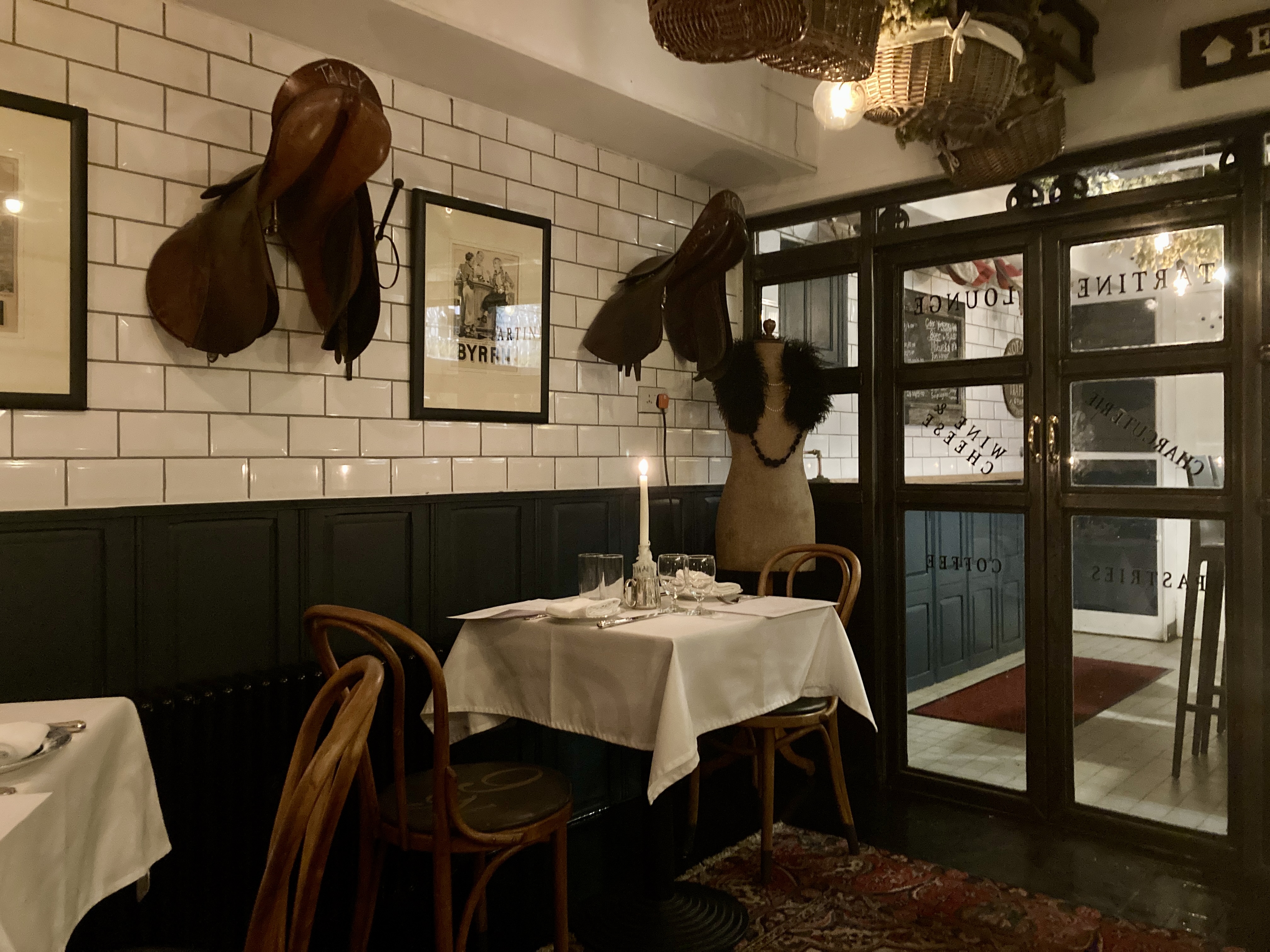 In Ripon there’s a choice of Shaun Rankin at Grantley Hall (“park your helicopter over there sir, but I’m afraid your tatty old Porsche will have to go round the back – Ferraris only at the front”). Not for us – it’s that stuffy, fusty, up themselves approach that we don’t need thanks very much – and the décor is Fin de Siècle meets Wayfair. And we’ve been around. Instead there’s The Tartine Lounge. Authentically French converted from a butcher’s shop (it just had to be) with ever so slightly eccentric and eclectic décor, there’s 3 courses, some perfectly acceptable wine by the glass or the bottle and a relaxing ambience. Coffee is off – the boiler’s broken. It used to be the ‘supper club’ after Vanora’s bakery had finished for the day but now the roles are reversed – restaurant with home made baguettes. Yes, we could comfortably manage to cook the food they serve – French onion soup, boeuf bourguignon and a tart au pommes – but it’s nice to find someone who does it for you. A genuine local gem.