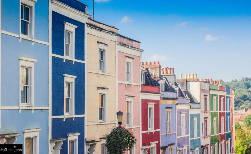 We spend Saturday in Clifton, before the wedding we’ve travelled to join, admiring the architecture and trying not to think of the two suitcases full of male body parts someone was trying to drop into the water from the bridge a week or so ago. We visit the famous coloured houses – allegedly first started by architect George Ferguson, also mayor of Bristol, at the time, and Past President of the Royal Institute of British Architects. Knew a bit about buildings, then.