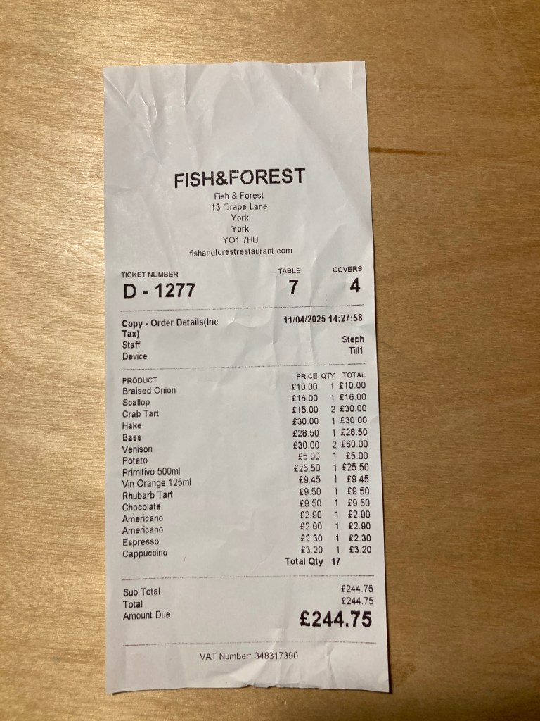 Flushed with the success of a review in the Guardian / Times / friend of a friend of a friend, we find ourselves in York again. There’s no end to the smart little restaurants popping up and gaining national acclaim. Some survive [Skosh, for example], whilst some disappeared – Blue Bicycle, Le Langhe – replaced by the huge number of chain restaurants – you know who they are. These chains were the death of a number of similarly good/great restaurants in Harrogate. Van Zellers, lauded by Marina O’loughlin no less, finally shut up shop in 2016 as it couldn’t compete. These chains build big [that’s a horrible word…Ed] and then cross-subsidise from their central pot of funds until they drive out the perceived competition. Let us tell you, Ask and Zizzi [good for what they do] were never going to be competition for Van Zellers.