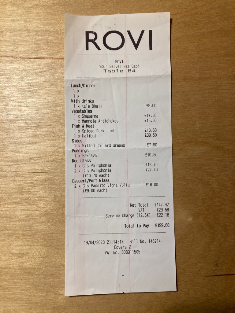 We now have around 100 cookery books…and one of the best is ‘Simple’ by Yotam Ottolenghi. So, we went to one of his restaurants in London. Very good…but not great. Try Origin Social in Northallerton for a similar [better?] and considerabbbblllly cheaper experience. But do get the book – it will change your life or your money back [not really…Ed].