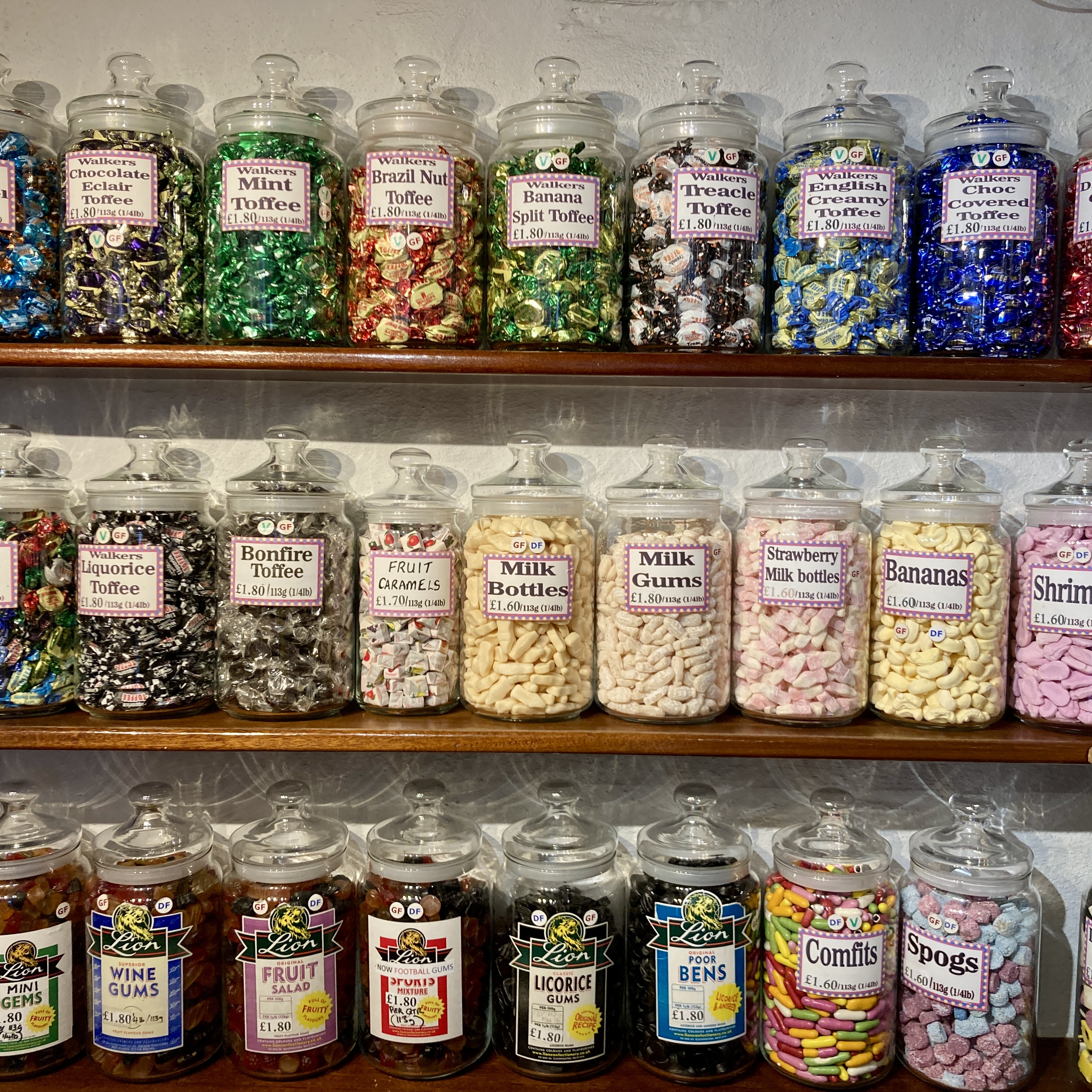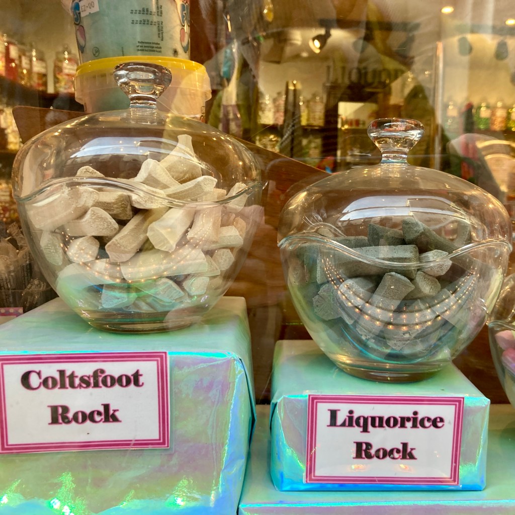 We buy Coltsfoot Rock [sort of liquorice flavour] and jelly babies. They also have jars and jars of stuff we haven’t seen for, well, a hundred years it seems. We may have misremembered the taste of Coltsfoot Rock.