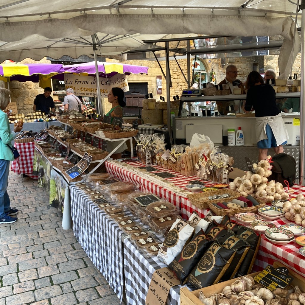 Sarlat is magical – street theatre, candles, market, shops, restaurants; it’s like a stage set but full of locals as well as tourists.