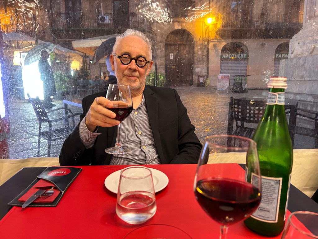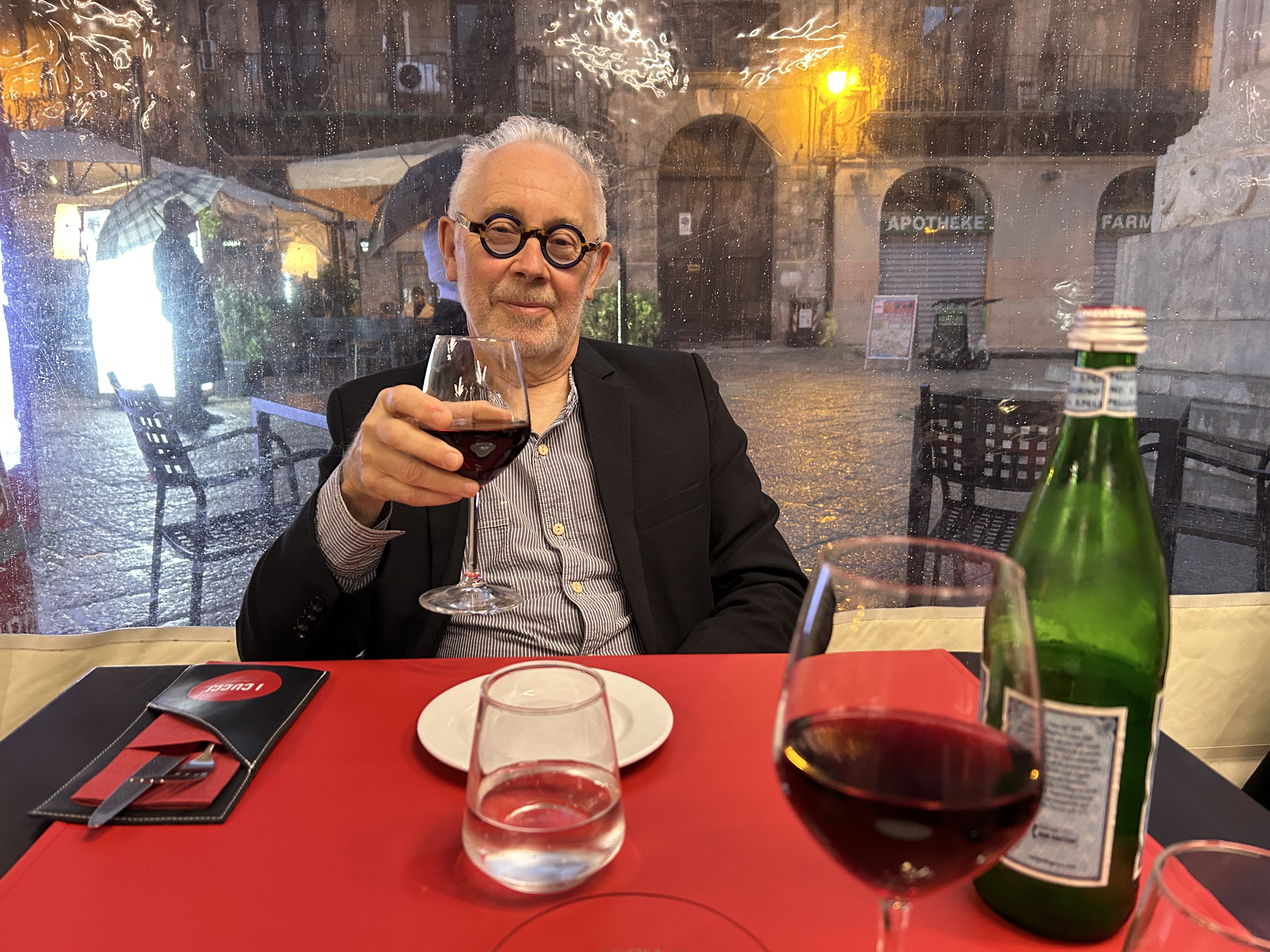 So, I Cucci. Set in a small square (Piazza Bologni) just off Via Vittorio Emanuele. It’s raining (what!…Ed) so the plastic covers are down around the outside seating. We’re new here and order too much food – we’ve leant from that. now We had two starters – 25 euros each – and were completely overfaced. Not a good start. And it was raining – did we mention that? Still, a good start really and it just kept getting better. There were a few ‘Tourist go home’ signs, but were residents by now…